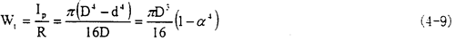 ,導出的公式中引進了截面極慣性矩和抗扭截面系數,在空心軸的情況下有
