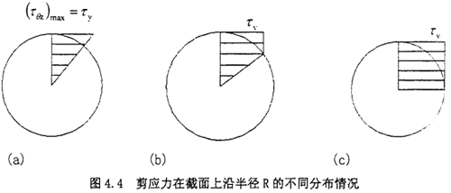 此時剪應力在截面上沿半徑R的分布情況見如圖4.4(b)所示。