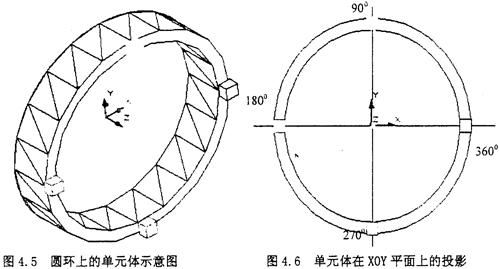 在像膠右端面圓環(huán)上取單元體,且在分析過程中時取關鍵的四個象限點的位置作為研究對象,分別為90°,180°,270°,360°位置為研究對象。后面的徑向不對中、角向不對中以及綜合不對中也采用相同的4個位置進行分析。