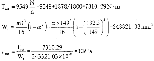根據實際情況計算出工作時的剪應力:GK2型內燃機車啟動發(fā)電機ZQF-38TH,115V,38KW,1170~358Or/min;GK2型內燃機機用柴油機型號為MTU16V396TC14,持續(xù)功率為1378KW,旋轉角速度為18O0rad/min。柴油機冷區(qū)液溫度為40℃時最小啟動轉矩包括加速余量約8OON.m,曲軸扭矩約75ON.m