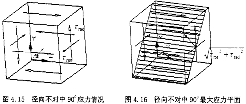 由圖示可知,此時(shí)單元體的受力其實(shí)是屬于純剪切狀態(tài),只是此時(shí)的剪切應(yīng)力為τrad與τrot的疊加。此時(shí)剪應(yīng)力τrad與τrot的方向相反。所在最大應(yīng)力有所抵消。