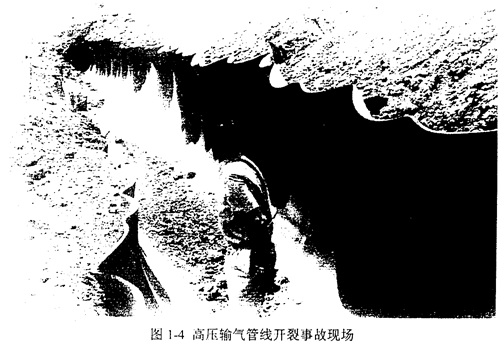 圖1-4為高壓輸氣管線開裂事故現(xiàn)場(chǎng)