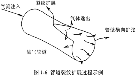 由于缺陷持續(xù)擴(kuò)展而導(dǎo)致管線開裂是高壓輸氣管線區(qū)別于輸送液體(如石油)管線的特有破壞形式。高壓輸氣管線上可能發(fā)生長(zhǎng)距離的斷裂擴(kuò)展,而輸送液態(tài)物質(zhì)的管線上一般是發(fā)生泄漏或僅開裂數(shù)英尺。這種不同斷裂特征的原因在于氣體和液體具有不同的減壓特性。