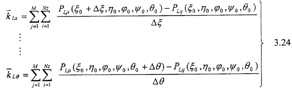 0,ψ0,θ0)。如果沒有達到精度則修改θ0值重復(fù)以上計算。得到靜平衡位置后再利用式3.24求得25個剛度系數(shù)。
