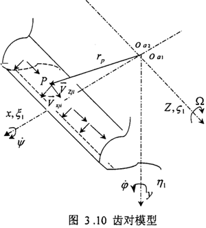 圖3.10是,齒輪聯(lián)軸器第i個齒對的模型,設(shè)內(nèi)齒套中心為oa1,相對定坐標(biāo)為o-xyz的速度為: