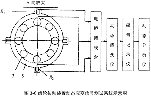 本節(jié)采用在軸承外圈套圈上拾取應變信號的方法對二級齒輪傳動裝置箱體所受的動態(tài)激勵力進行了測試和分析,在此基礎上對齒輪傳動裝置的軸系部件故障進行了診斷。