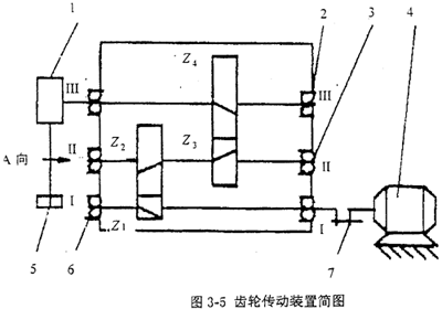 裝有齒輪、軸和軸承的軸系是齒輪傳動裝置的關(guān)鍵部件。在齒輪傳動裝置的工作過程中,箱體與其內(nèi)部的軸系部件構(gòu)成一個振動耦合體系,見圖3-4。軸系部件的振動通過軸承激發(fā)箱體振動,這樣在軸承外圈上安裝套圈并粘貼應變片,拾取套圈上的應變信號,也就是對齒輪傳動裝置箱體所受的動態(tài)激勵力信號進行測試和分析,就可對齒輪傳動裝置內(nèi)的軸系部件進行故障診斷。這種振動測試故障診斷的方法優(yōu)點是能直接拾取齒輪傳動裝置內(nèi)的軸系部件的振動故障信號,頻響范圍寬,費用低。缺點是需專門制做套圈。