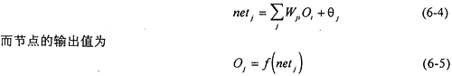對于圖6-1所示的網(wǎng)絡(luò),其訓(xùn)練學(xué)習(xí)的過程包括:1)網(wǎng)絡(luò)內(nèi)部的前向計算;2)誤差的反向傳播。其主要目的就是通過逐步調(diào)整網(wǎng)絡(luò)的內(nèi)部連接權(quán)值,使網(wǎng)絡(luò)的均方誤差達到我們的要求。網(wǎng)絡(luò)內(nèi)部的連接權(quán)值的調(diào)整,都是采用推廣的δ規(guī)則來完成的。