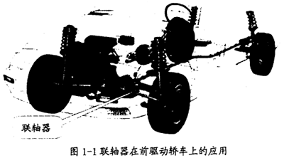 為適應不同的需求,聯(lián)軸器的種類和型式多樣,使用范圍非常廣泛,在冶金礦山、交通運輸(如圖1-1中聯(lián)軸器在轎車上的應用)、工程機械、航天航空、船舶機械、輕工紡織等眾多行業(yè)都有大量的應用,并在不斷地改進與創(chuàng)新。