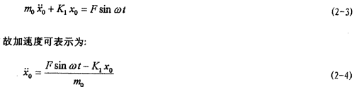 對(duì)應(yīng)的力學(xué)模型如圖2-3(見22頁)所示,式中m1為振動(dòng)臺(tái)動(dòng)圈、聯(lián)軸器外套及固定在振動(dòng)臺(tái)上夾具的質(zhì)量;m2為聯(lián)軸器內(nèi)套、芯軸及配重的質(zhì)量;K1為振動(dòng)臺(tái)支撐動(dòng)圈部分的剛度系數(shù),K2為聯(lián)軸器彈性元件的剛度系數(shù);C1為振動(dòng)臺(tái)動(dòng)圈阻尼系數(shù);C2為聯(lián)軸器