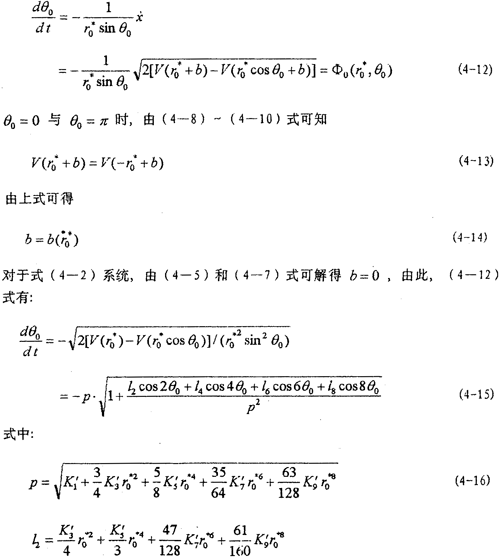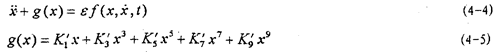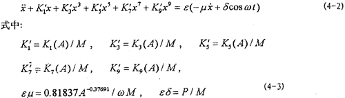 目前文獻(xiàn)上的一些方法對(duì)于弱非線性系統(tǒng)是有效的,而對(duì)于(4-2)式的強(qiáng)非線性系統(tǒng)則遇到了麻煩。由于描述非線性振動(dòng)系統(tǒng)的微分方程種類(lèi)繁多,沒(méi)有普遍的解法,因此,仍然只有極少非線性振動(dòng)方程可求得精確解�?尚械霓k法是針對(duì)不同非線性振動(dòng)方程的特點(diǎn)尋求一些近似數(shù)值解法。為研究方便,將(4-2)式進(jìn)一步寫(xiě)成以下形式: