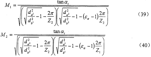 式中da1(da2)、db1(db2)、Z1(Z2)分別為小輪(大輪)的齒頂圓,基圓直徑和齒數(shù);αt為端面分度圓嚙合角,見式(29),εα為端面重合度,見式(36)。