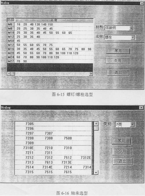 針對企業(yè)的實際需求,在庫存-設(shè)計模塊,控制設(shè)計人員對螺釘/螺栓(見圖6-15)和軸承(見圖6-16)的選型。盡可能減少零件的庫存量,從而達到合理利用企業(yè)的資源。