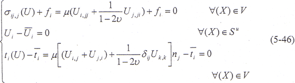 對于三維彈性問題,若以位移為其本未知量,則其基本微分方程和邊界條件可表示為