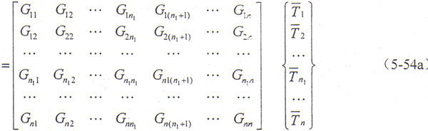將(5-40)式離散并用矩陣表示,則可得共軛鼓形齒輪傳動的接觸邊界元方程