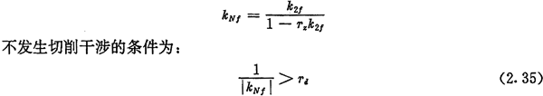 另外,當選用半徑為Td的刀具加工內(nèi)齒圈齒廓時,在齒根處可能發(fā)生切削干涉(過渡切削)。同樣由式(2.24)可計算出曲線H2在對應于齒根處的相對曲率k2f,齒廓曲線HN在齒根處的相對曲率kNf為: