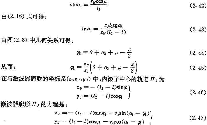 式(2.36)、(2.37)、(2.38)是偏心圓激波器的推桿減速器中l(wèi)1、a2與φ2的基本關(guān)系式,后面常用到它們。
