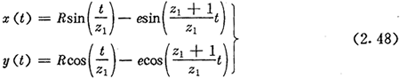 對于圖2.5所示正向結(jié)構(gòu),在與內(nèi)齒圈固聯(lián)的坐標系中,得到外滾子中心軌跡H2的方程為: