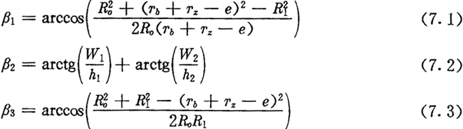 上式中h1、h2、W1和W2都是擺動中心與內(nèi)外滾子中心相對位置的參數(shù),見圖7.2(a)。