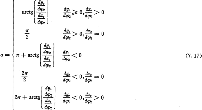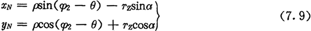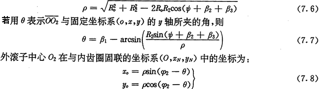 上式中,α為內(nèi)齒圈齒廓在M2點的法線與yN軸的夾角,它等于外滾子中心軌跡在O2點的切線正向與xN軸正向的夾角(圖7.3)