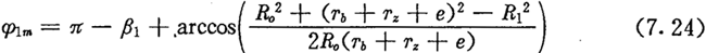 若仍記激波器半徑為Tb,激波器偏心距為e,滾子半徑為Tz,則由圖7.2(a)可得: