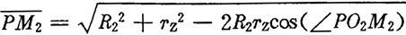 的夾角為∠PM2O2-θ2由△PM2O2可得: