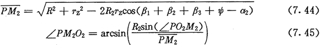 上式中的α2是外滾子中心軌跡曲線在O2點向徑與法線的夾角,可由圖7.3求得,為:
