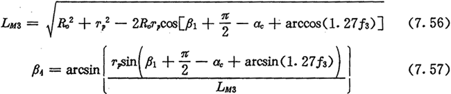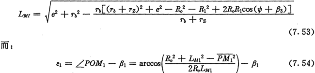 上式中的LMI表示激波器與內(nèi)滾子的接觸點M1離轉(zhuǎn)動中心O的距離,可從圖7.6中的△OBM1求得:
