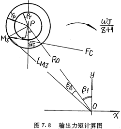 上式中LM3為傳動圈對軒動機構(gòu)總作用力FC的作用點M3離轉(zhuǎn)動中心O的距離,如圖7.8所示。從圖中△OM3P可得:
