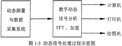 信號是動態(tài)測量和動態(tài)分析的對象。動態(tài)測量和動態(tài)分析的過程,實質(zhì)上就是信號采集、轉(zhuǎn)換、存貯和處理的過程,廣義上屬于信息論的范疇。動態(tài)信號處理過程示意圖如圖1-5所示。