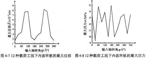 表4-5 內(nèi)齒環(huán)板12種典型工況下的位移及應(yīng)力計算結(jié)果