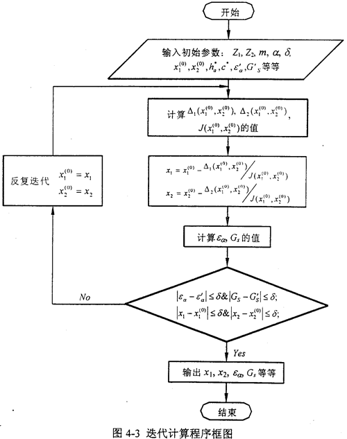 根據(jù)上述公式推導(dǎo),編制了迭代計算程序,程序框圖如圖4-3所示。