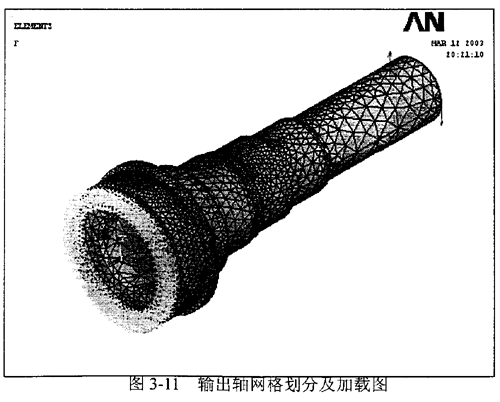 3.3.2.2輸入輸出軸的強(qiáng)度分析 同樣將Pro/ENGINEER中創(chuàng)建的輸入軸和輸出軸模型以IGES格式導(dǎo)入ANSYS中,并作適當(dāng)拓?fù)湫扪a(bǔ),完成預(yù)處理中實(shí)體模型的建立。