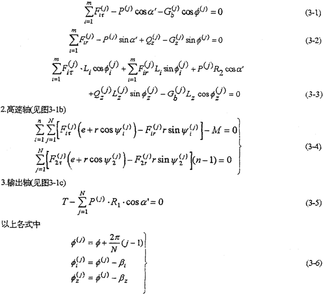 (3-11)及式(3-14)就是少齒差內(nèi)齒行星傳動機的動力分析補充方程。