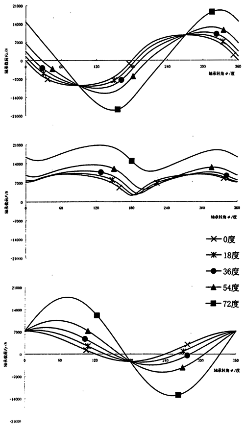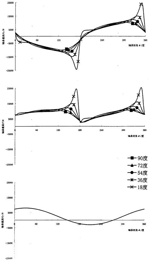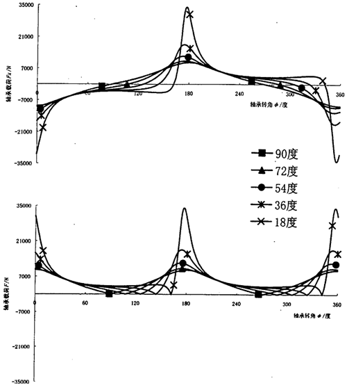 圖3.15 連桿相位角對輸入軸連桿軸承周期載荷的影響