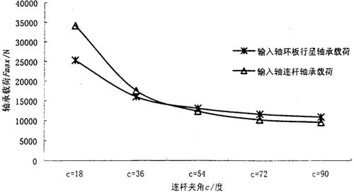 圖3.12 (連桿式)嚙合角對軸承最大載荷的影響