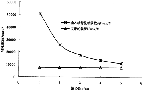 圖3.19 (皮帶式)偏心距與軸承載荷的關(guān)系