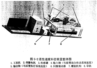 基于圖5-1所示機構(gòu),配置伺服驅(qū)動裝置、傳感器以及計算機控制系統(tǒng),獲得該柔性速度補償裝置的原型,如圖5-2所示。