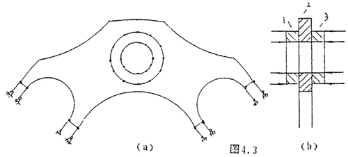 為了分析方便,我們依然取疊片的2/n來分析,當(dāng)聯(lián)軸器傳遞扭矩時(shí),疊片受到主、從動(dòng)法蘭盤上的聯(lián)接螺栓的作用,其作用的載荷是反對(duì)稱載荷。
