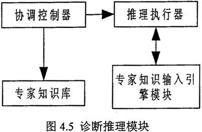 推理模塊是一個隱藏于后臺的推理計算模塊,它的結(jié)構(gòu)如圖4.5,協(xié)調(diào)控制器用來管理各推理機(jī)的工作并協(xié)調(diào)推理執(zhí)行器與專家知識輸入引擎模塊可知,對一示同的故障,其“數(shù)據(jù)層”、“故障現(xiàn)象層”、“故障原因?qū)印奔捌渌鼈冎g的連線關(guān)系絕不相同,協(xié)調(diào)控制器就是將“數(shù)據(jù)層”、“故障現(xiàn)象層”、“故障原因?qū)印奔捌渌鼈冎g的連線關(guān)系自動轉(zhuǎn)化為推理進(jìn)程關(guān)系,由推理執(zhí)行器完成推理診斷工作。