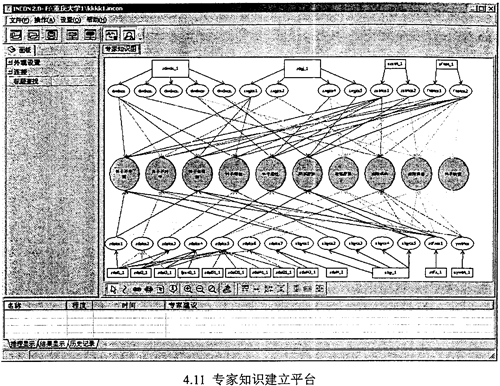 根據(jù)給出的數(shù)據(jù)端口及數(shù)據(jù)格式,即可按用戶的要求設(shè)計診斷結(jié)果輸出平臺。診斷結(jié)果應(yīng)給出診斷故障的名稱、故障發(fā)生的部位,故障發(fā)生的時間及程度。對于不同的故障,提示故障發(fā)生的可能原因,給出相應(yīng)的專家建議或維修方法等。圖4.10為本文集成系統(tǒng)的診斷結(jié)果輸出用戶界面。圖4.11為本文集成系統(tǒng)的專家知識庫建立及診斷推理平臺。