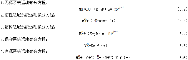 振動(dòng)系統(tǒng)有確定性和隨機(jī)系統(tǒng)兩大類,在這里,我們主要討論確定性振動(dòng)系統(tǒng)。確定性振動(dòng)系統(tǒng)通常分為分布參數(shù)振動(dòng)系統(tǒng)和離散振動(dòng)兩大類,不同的振動(dòng)系統(tǒng)存在其相應(yīng)的描述方法。
