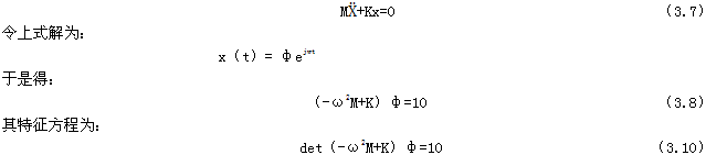 僅討論無(wú)阻尼離散振動(dòng)系統(tǒng),無(wú)阻尼自由振動(dòng)系統(tǒng)運(yùn)動(dòng)微分方程由式(3.5)確定為: