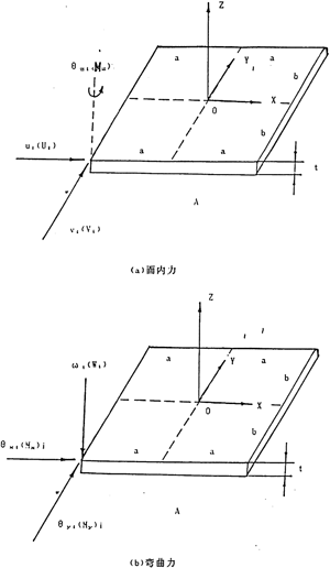 線性薄殼矩形元,它同時(shí)承受“面內(nèi)”力和彎矩作用,如圖3-2所(a)、(b)所示。