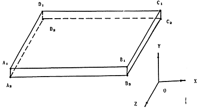 底板上上表面四個角點A1、B1、C1、D1和下表面四個角點A2、B2、C2、D2沿x向、y向和z向的平移自由度為零,旋轉(zhuǎn)自由度任意。如圖3-10所示。