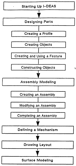 在SUN工作站上使用I—DEAS軟件的Solid—Modeling模塊對SHQ40箱體進行實體建模,其主要操作規(guī)程如圖3-4所示。