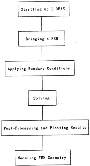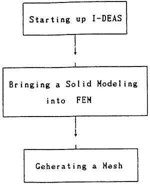在SUN工作站上使用I—DEAS軟件中的有限元模塊(FE—Modeling—and—Analysis)對SHQ40箱體進行有限元分網(wǎng),其具體操作規(guī)程如圖3-7示。