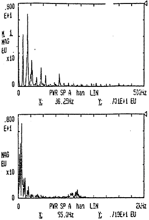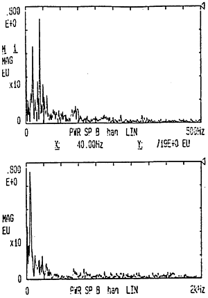 如圖6-14、圖6-15、圖6-16、圖6-17、圖6-18、圖6-19及圖6-20示,圖中示出了各種工況下,頻率范圍為0~500HZ和0~2KHZ速度自功率譜密度函數(shù)的對比,從圖中可以看出,速度自功率譜密度函數(shù)值主要集中在500HZ頻率范圍內(nèi),這樣,我們以0~500HZ的范圍來計算均方根速度的精度是足夠的。根據(jù)CF-355內(nèi)部設置知時間