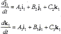 以i1、j1、k1分別點乘以上三式的兩邊,有