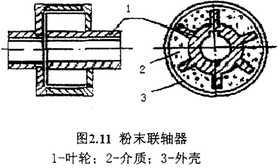 從圖2.11中我們可看出,主動(dòng)件和被動(dòng)件都是各自獨(dú)立回轉(zhuǎn)的零件,當(dāng)主動(dòng)軸回轉(zhuǎn)時(shí),將粉末介質(zhì)帶起而回轉(zhuǎn),轉(zhuǎn)速升高后,由于離心力的作用,使粉末介質(zhì)之間和介質(zhì)和外殼之間的摩擦力隨之增加,因而帶動(dòng)被動(dòng)軸回轉(zhuǎn)。
